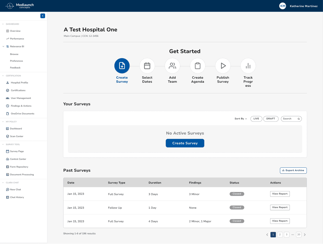 Although the Surveyor Tool appeared modern, it failed to support how audits actually happen. Users hesitated when starting tasks, lost context while planning multi-day schedules, and experienced friction when documenting findings. Even experienced healthcare and compliance professionals struggled to move confidently through core workflows.