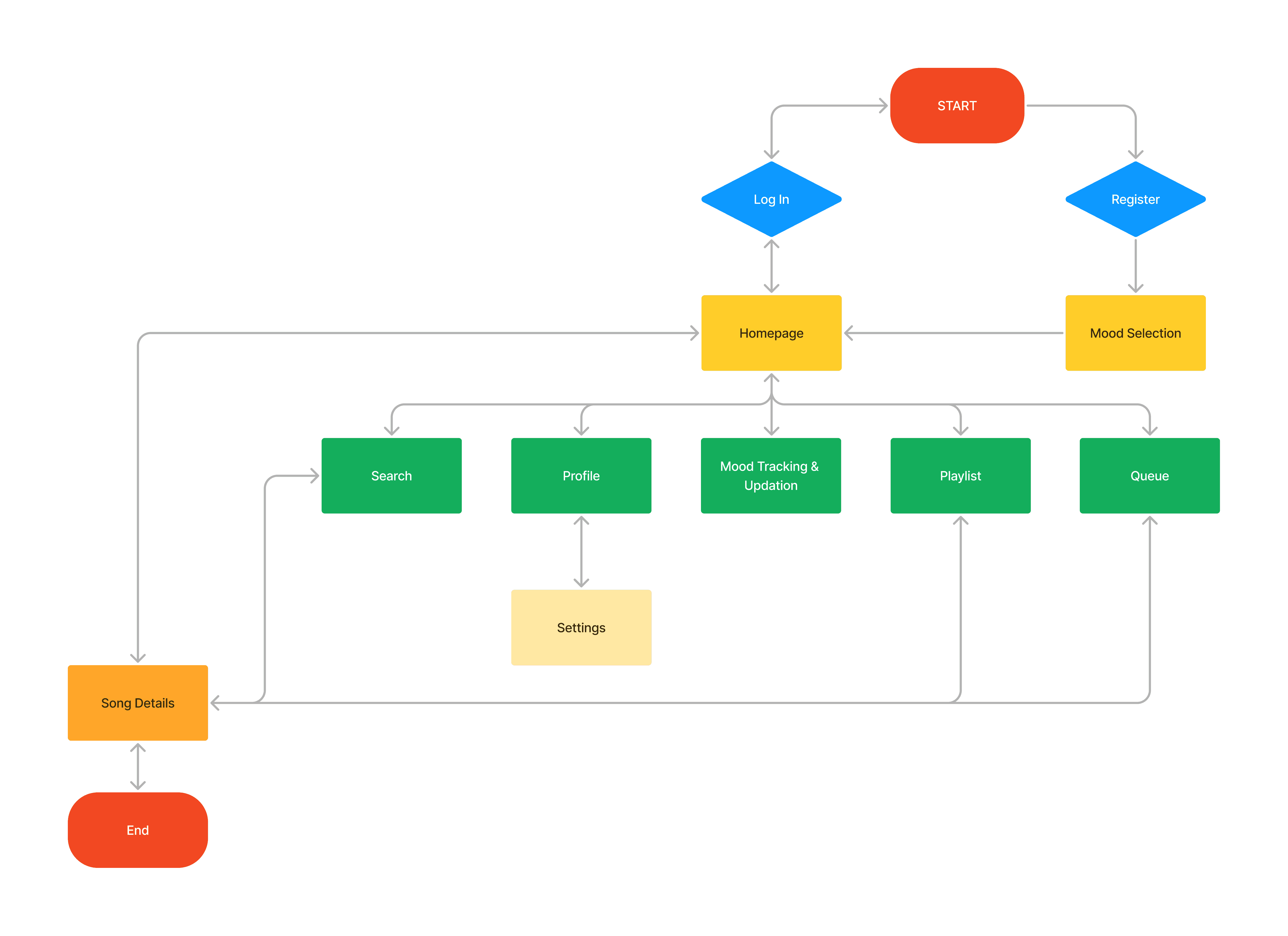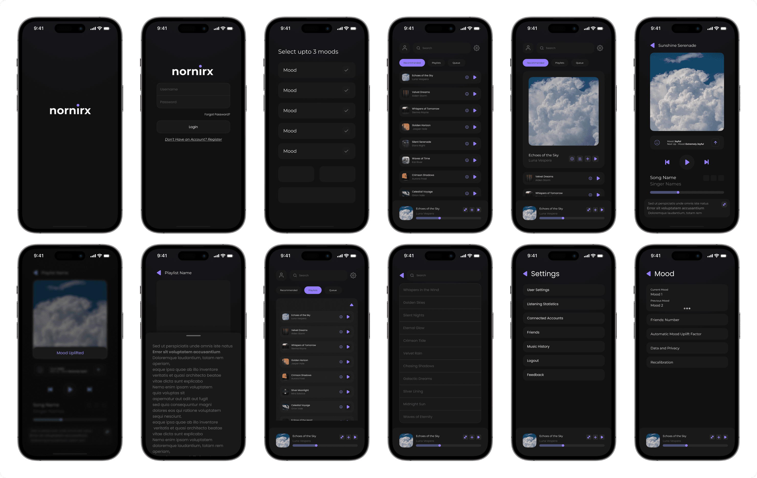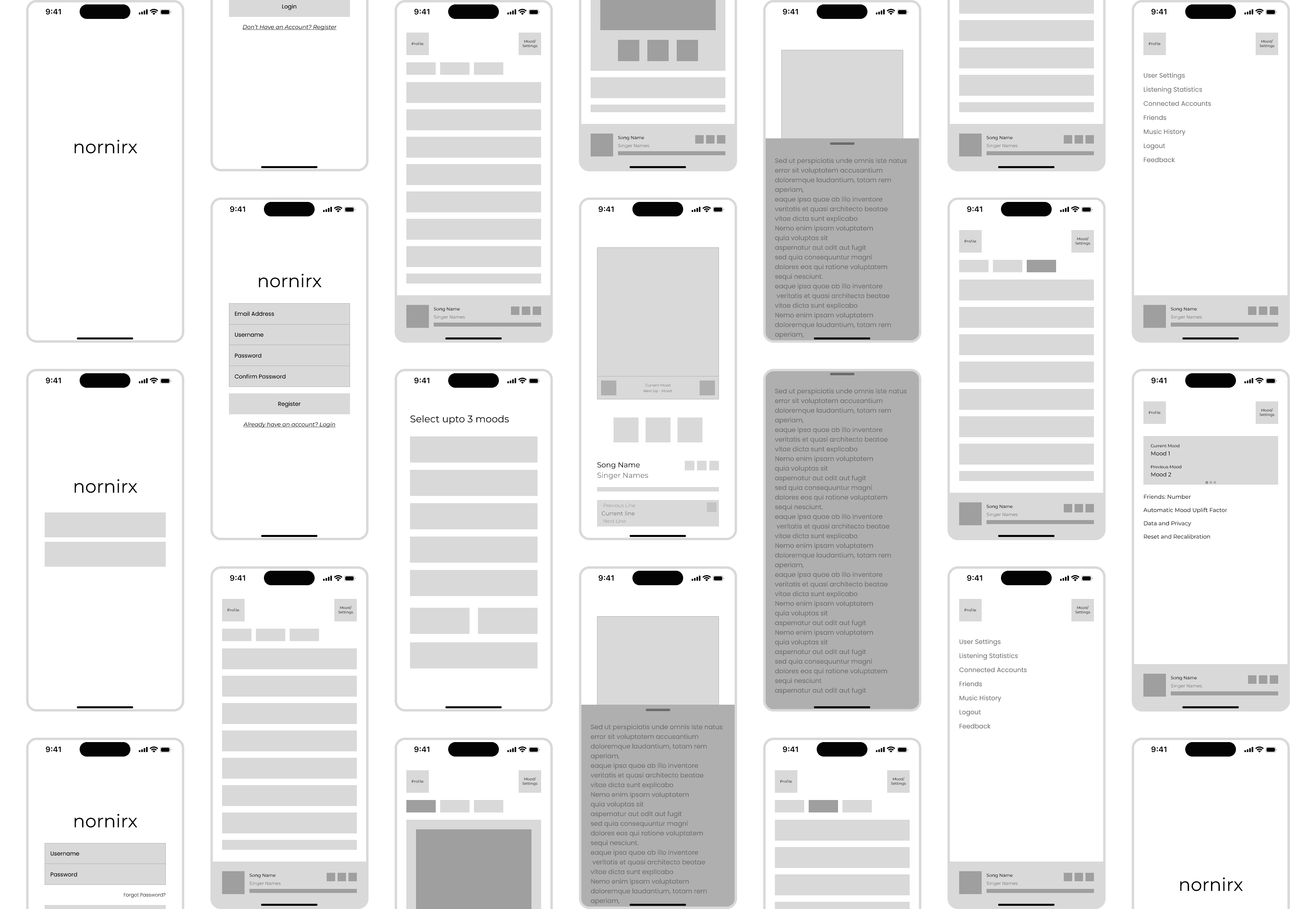 Through initial research and conversations with users, we identified a common desire: users want music that reflects their emotions in real time. The primary pain points included a lack of mood-based recommendations and low engagement, as traditional algorithms failed to adapt to emotional contexts. Nornirx was designed to address these gaps, offering a personalized, mood-based solution to help users feel truly understood by their music app.