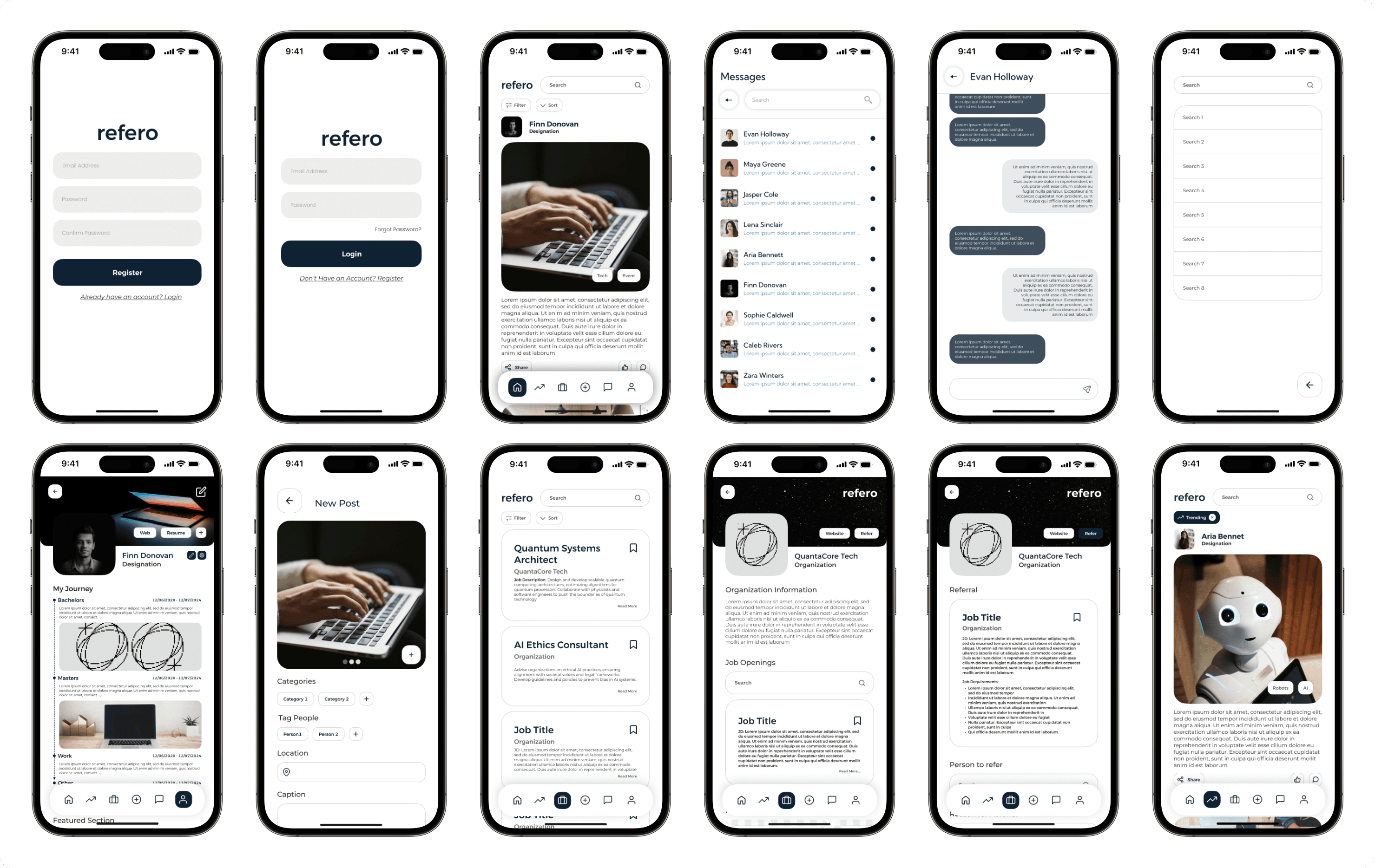 Designing Refero highlighted the importance of meticulous attention to detail in crafting user-centric designs for a job referral application. I learned how even the smallest design elements can significantly impact functionality and user perception. Additionally, I discovered the critical role realistic dummy information plays in shaping the design, helping to align it with user expectations and real-world scenarios.
